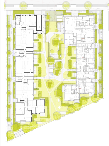 Über die Jahre hat sich auf dem ehemaligen Güterbahngelände in Freiburgs Norden eine reiche Ruderalflora eingestellt. Diesen besonderen Charme von spontaner Wildnis fängt der Entwurf für die Freianlagen zwischen zwei mehrgeschossigen Neubauzeilen ein. Die besondere Topografie, Schotter in verschiedenen Körnungen und Pioniergehölze prägen das Leitbild für den Innenhof mit Gemeinschaftsangeboten, Spielplatz und Kita-Garten.