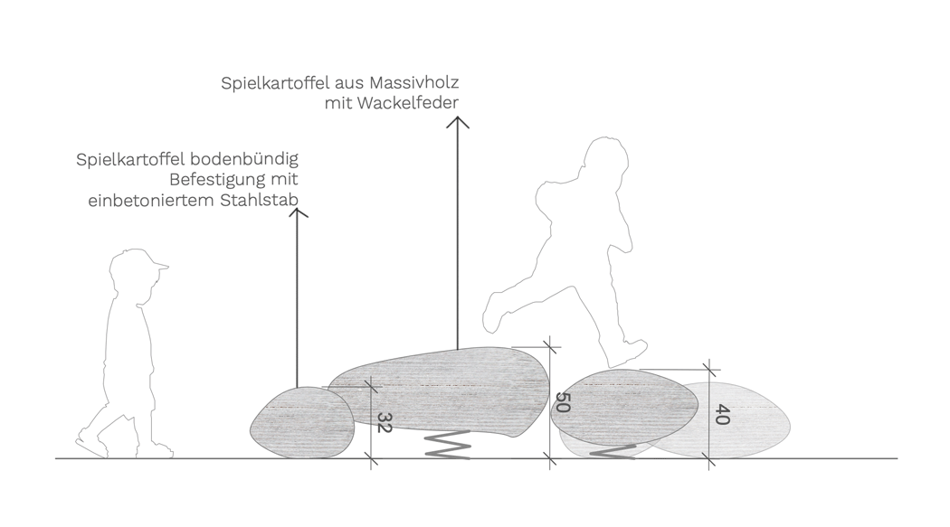 Die Spielkartoffeln aus Holz können einen Bezug zur Forchheimer Kartoffeltradition darstellen. Die Spiel- und Wackelskulpturen können nicht nur von Kindern, sondern auch von Erwachsenen z.B. zum Gleichgewichtstraining genutzt werden.